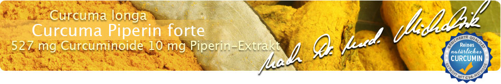 Seit 23 Jahren Curcuma forte nach Dr. med. Michalzik. Hochwertiger Curcuma longa Extrakt mit 95 % Curcuminoiden pro Kapsel. Pro Kapsel sind 10 mg Piper nigrum-Extrakt mit 95% Piperin enthalten für eine optimale Bioverfügbarkeit. Reine Extrakte ohne Zusätze. Die über 40-jährige Erfahrung im Bereich der Naturstoffe führten zur Entwicklung dieses hochreinen Produktes. Gesundheit ist unsere Passion - nutzen Sie unseren Kundenservice und gute Erreichbarkeit, wir sind für Sie da.
